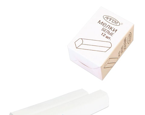- Мел белый АЛГЕМ, набор 12 шт., квадратный, НМБ-12