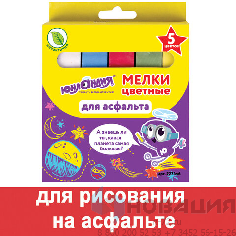 - Мел цветной ЮНЛАНДИЯ "ЮНЛАНДИК И КОСМОС", НАБОР 5 шт., для рисования на асфальте, квадратный, 227446